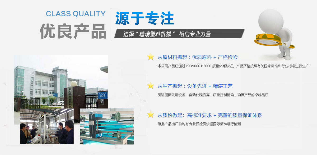 山東精瑞塑料機械有限公司是集研發(fā)、設計和生產管、膜、絲、帶、板、中空和電線電纜等塑料機械及塑料模具于一體的專業(yè)公司。公司匯集了一批專業(yè)的設計人員和研發(fā)人才,熟練的操作工人和經驗豐富的安裝調試人員以及專業(yè)化的售后服務隊伍,保證了產品的高品質、高性能,實現了快捷高效的售后服務。公司不斷研發(fā)新產品,產品暢銷全國二十幾個省、市、自治區(qū),并出口俄羅斯、敘利亞、新加坡、非洲和東南亞等地區(qū),公司擁有自營進出口權。